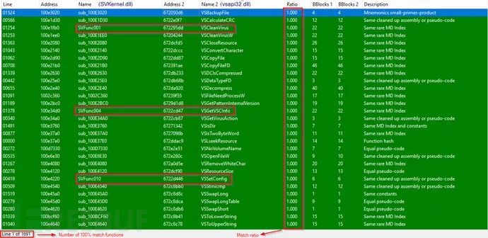 SVKernel.dll和vsapi32.dll之间的二进制比较结果