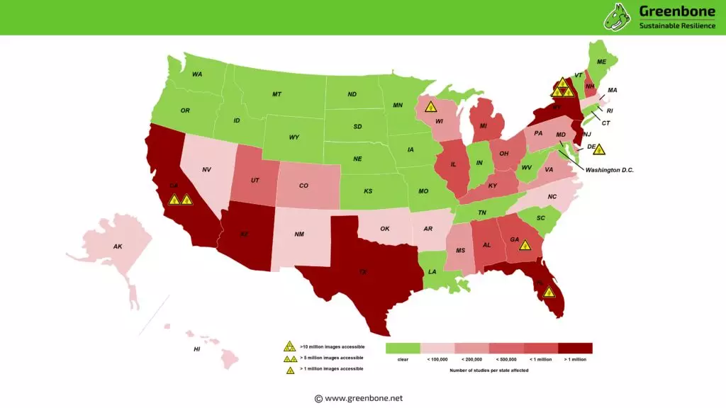 在2019年7月至2019年9月之间,Greenbone Networks进行了分析以识别全球范围内不安全的PACS服务器。该研究揭示了问题的严重性。在美国,在不安全的PACS服务器上发现了1,370万个数据集,其中包括3.031亿个医学图像,其中4,580万个可访问。当时在媒体上广泛报道了这一发现,现在已经发布了有关问题规模的更多信息。