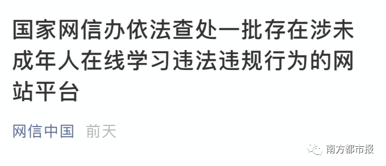 前天(8月7日),国家网信办发布消息称,国家网信办依法查处一批存在涉未成年人在线学习违法违规行为的网站平台。